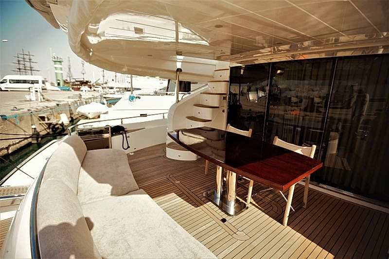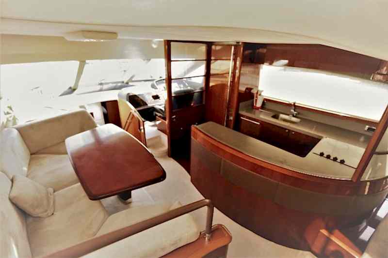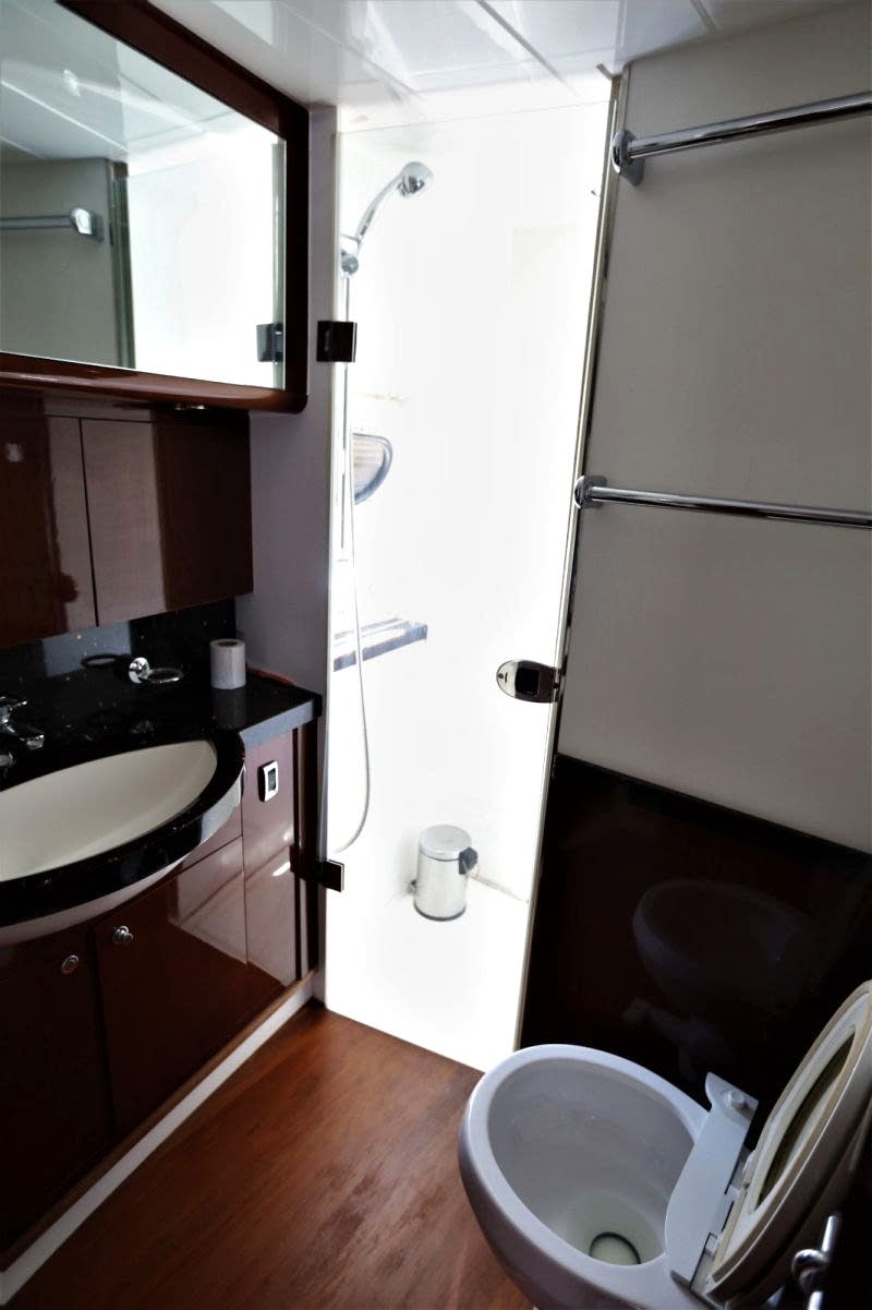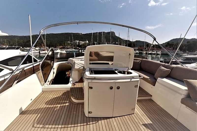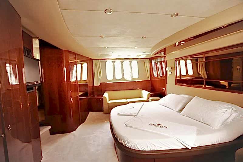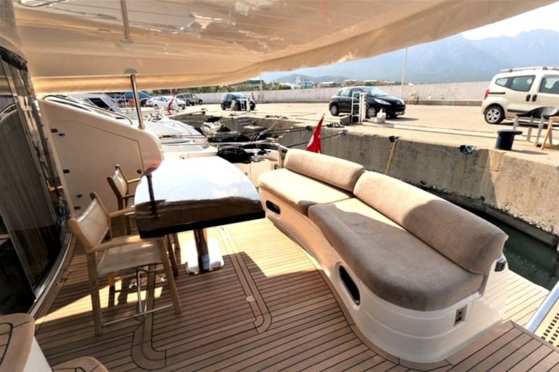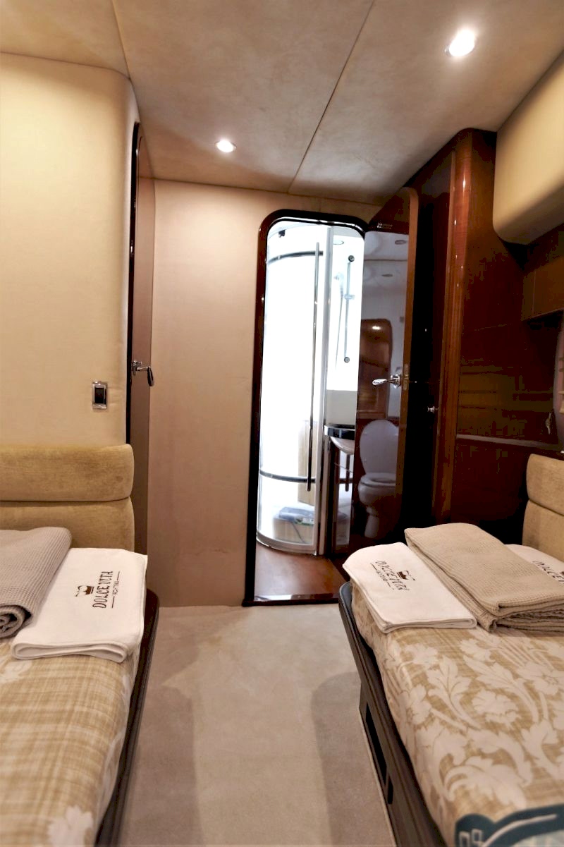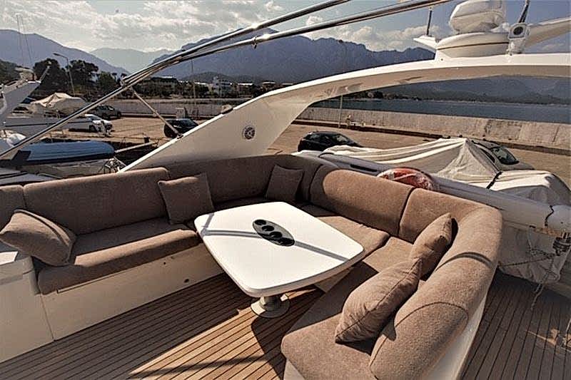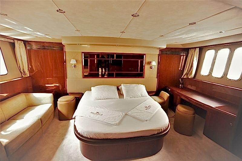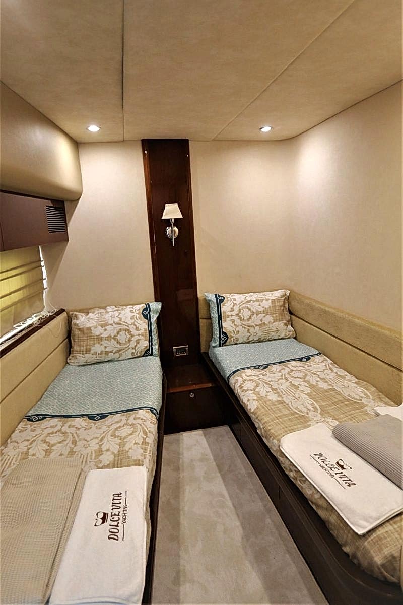 Deniz tutkusu olan misafirlerimiz için ön planda tutulan yatımız, şık ve konforlu oturma alanları ile hizmetinizdedir. 1 Master, 1 VIP, 1 Misafir kabin alternatifleri ile 6 kişiye kadar olan gruplarımızı rahat ettirebilmektedir. Güneşlenme ve Flybridge bölümü oldukça rahattır. Kaliteli hizmetinden asla ödün vermemiş teknemizde, 2 kişilik tecrübeli ve güler yüzlü ekibi mavi yolculuğunuzda sizlerle beraber olacaktır.